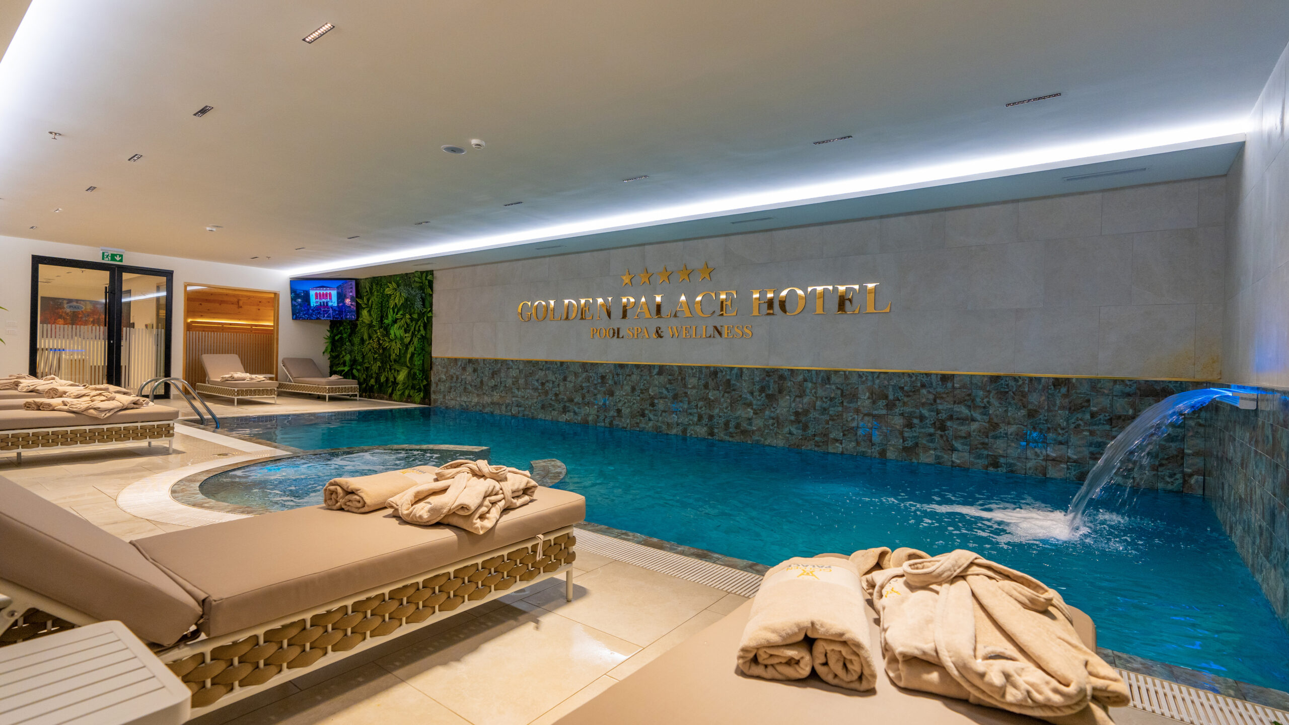 The Wellness & Spa center at Hotel Golden Palace offers a peaceful escape designed to restore both body and mind. Guests can enjoy a modern fitness center, indoor swimming pool, sauna, and relaxing massage treatments in a calm and elegant environment.